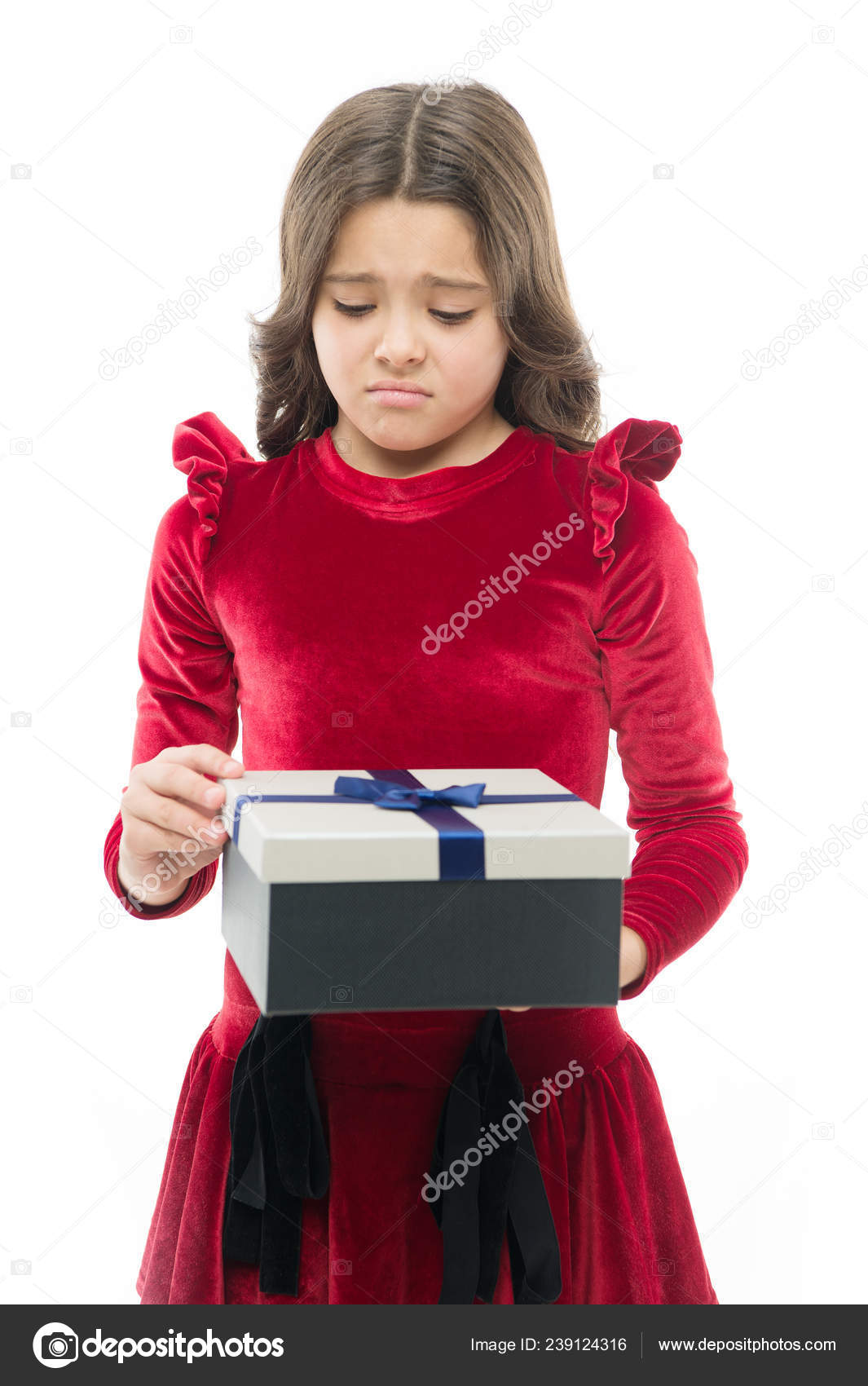 Happy Birthday Gift Little Girl With Present Box Small Girl